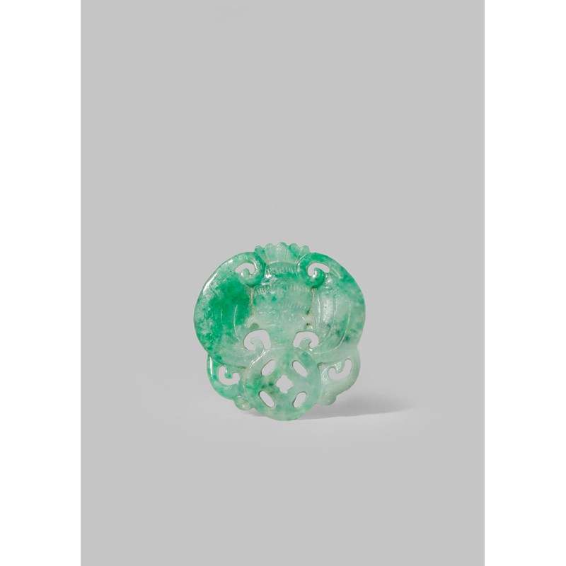 A CHINESE JADEITE RETICULATED PLAQUE QING DYNASTY Carved with a bat