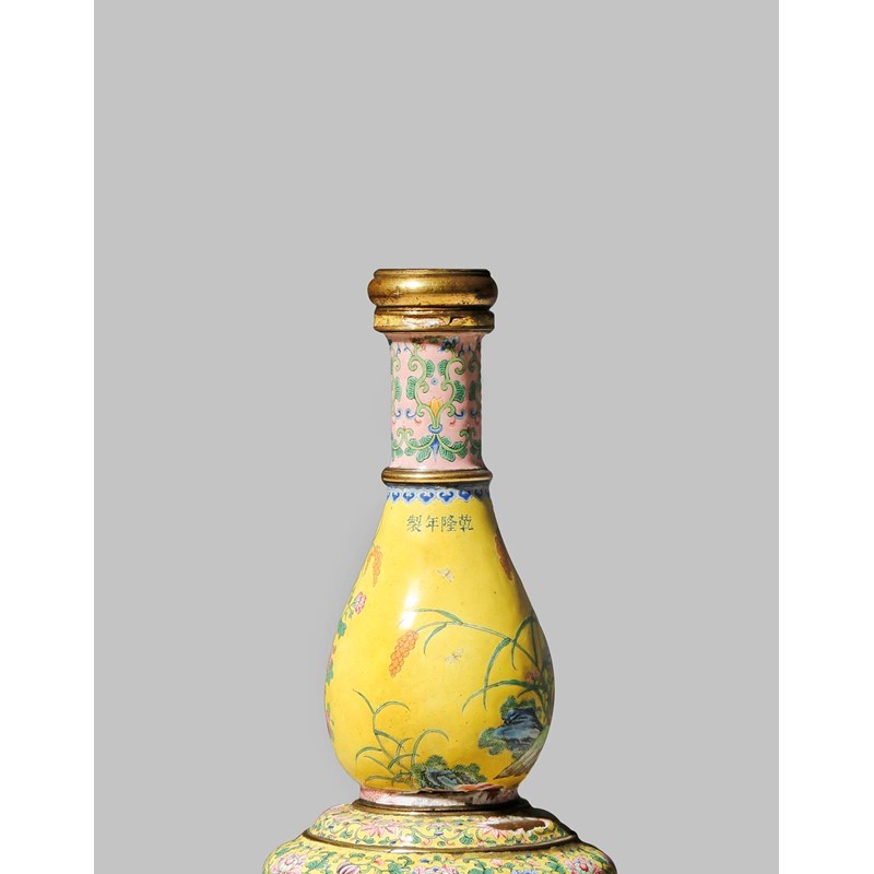 清乾隆 銅胎畫琺瑯黄地鷓鴣紋瓶