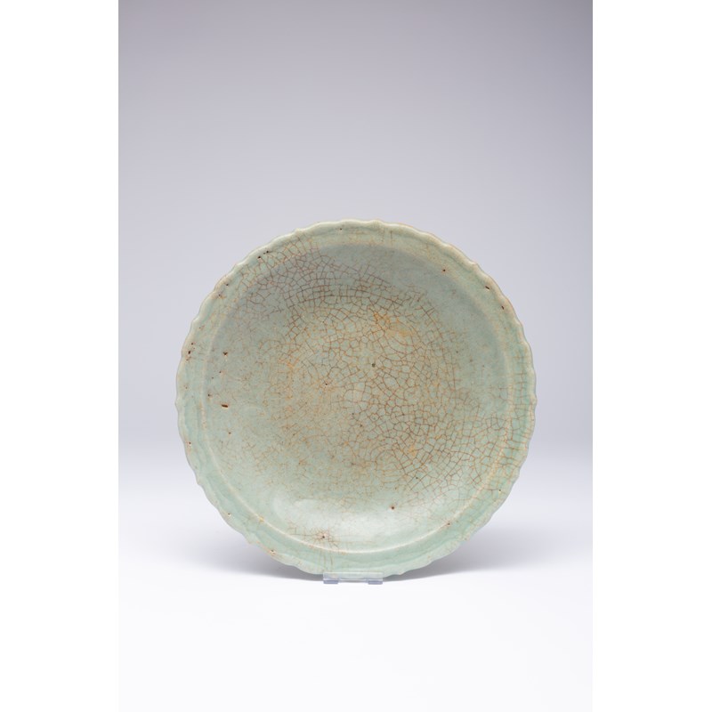 A CHINESE CELADON DISH BARBED-RIM CHARGER
