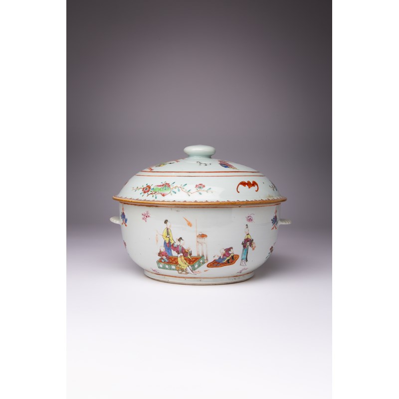 A CHINESE FAMILLE ROSE CIRCULAR TUREEN AND COVER