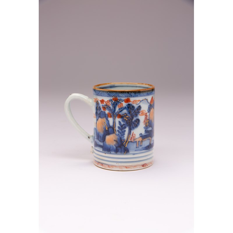 A SMALL CHINESE IMARI 'LANDSCAPE' CYLINDRICAL MUG