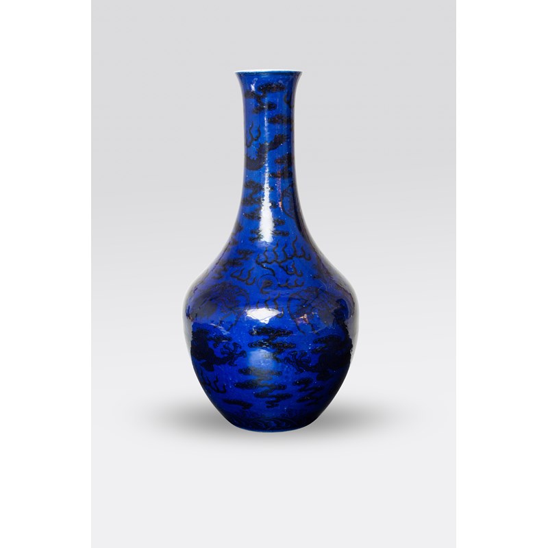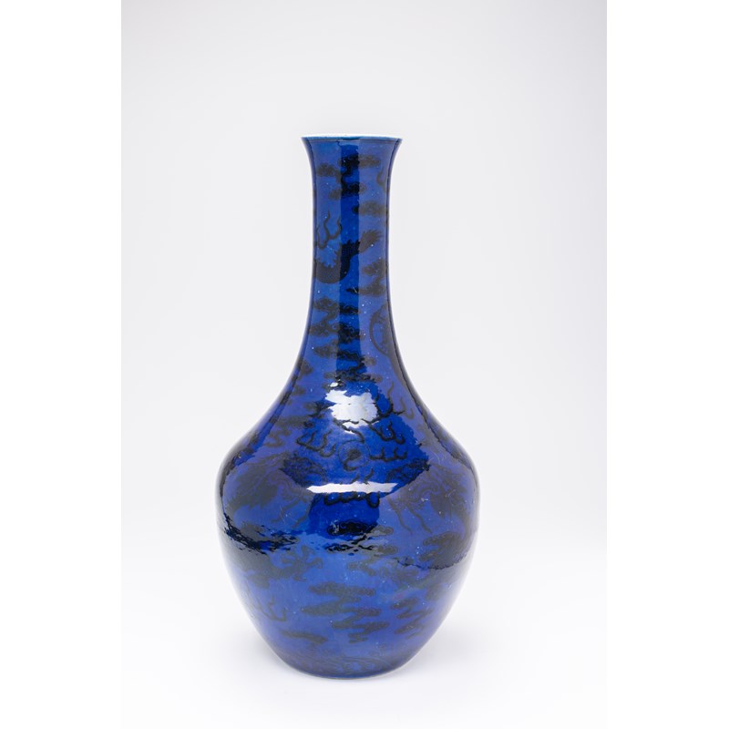 A CHINESE BLUE-GROUND 'DRAGON' BOTTLE VASE