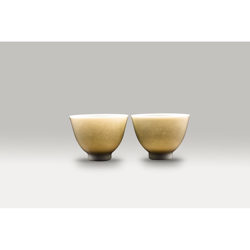 A SMALL PAIR OF CHINESE WHITE GLAZED ANHUA-DECORATED CUPS