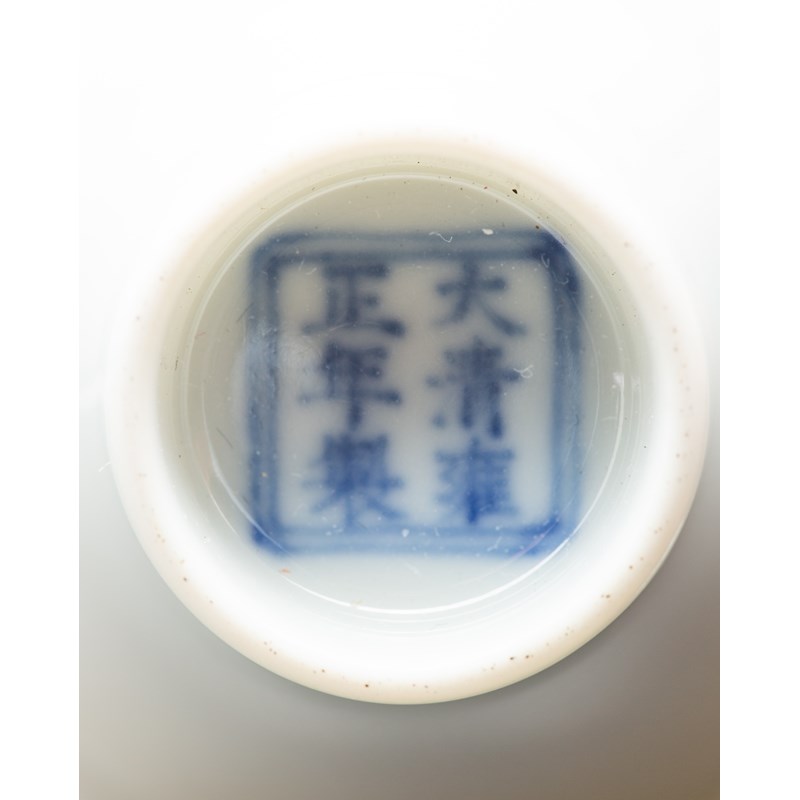 Each incised with two dragons chasing flaming pearls, covered overall in an even greyish-white glaze, each base with a Yongzheng mark, 5.1cm wide. (2)