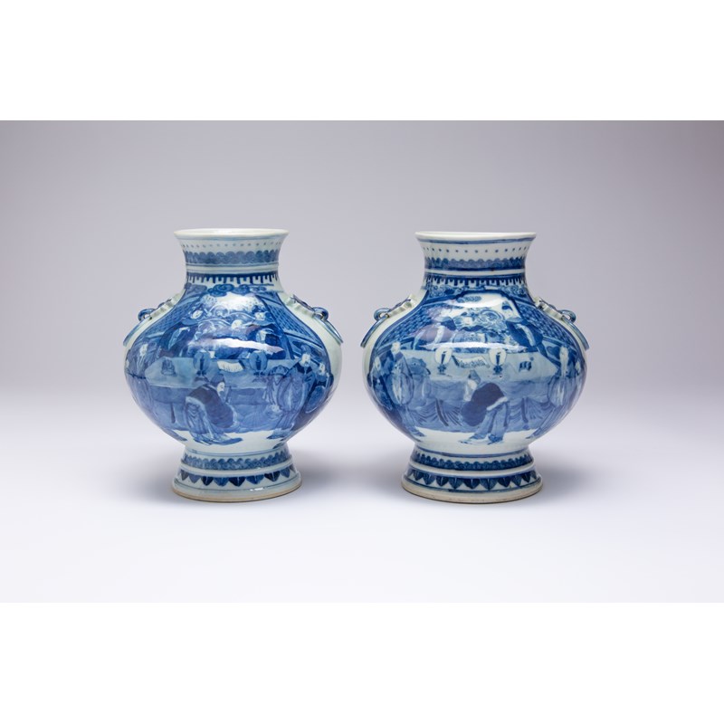 A PAIR OF CHINESE BLUE AND WHITE 'FIGURAL' VASES