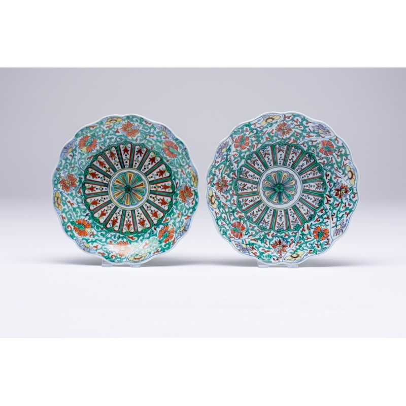 A PAIR OF CHINESE DOUCAI FOLIATE DISHES
