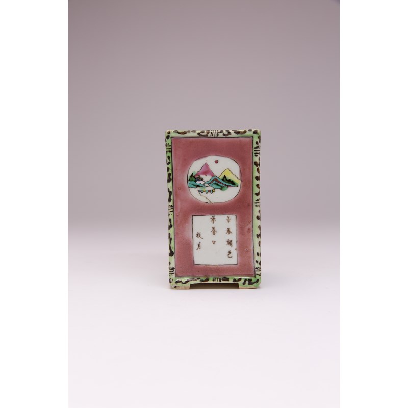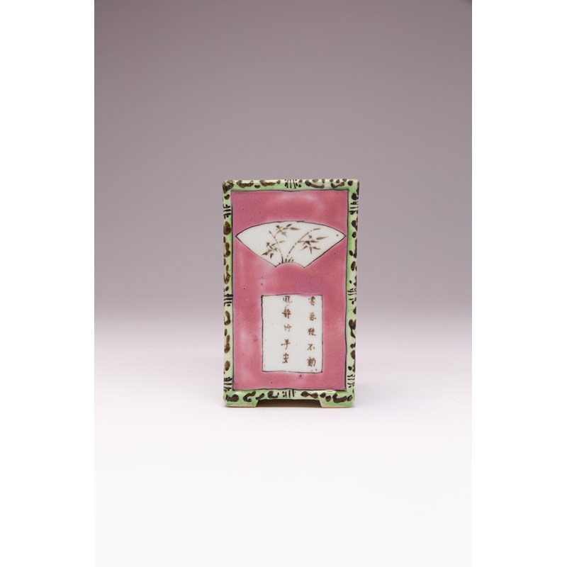 A CHINESE FAMILLE ROSE SQUARE-SECTION BRUSHPOT, BITONG