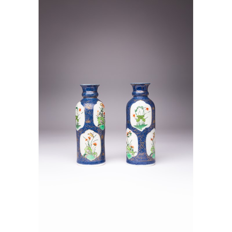 A PAIR OF CHINESE FAMILLE VERTE CYLINDRICAL VASES