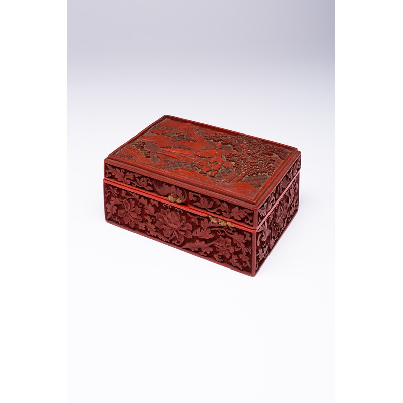 A CHINESE RECTANGULAR CINNIBAR LACQUER BOX AND COVER