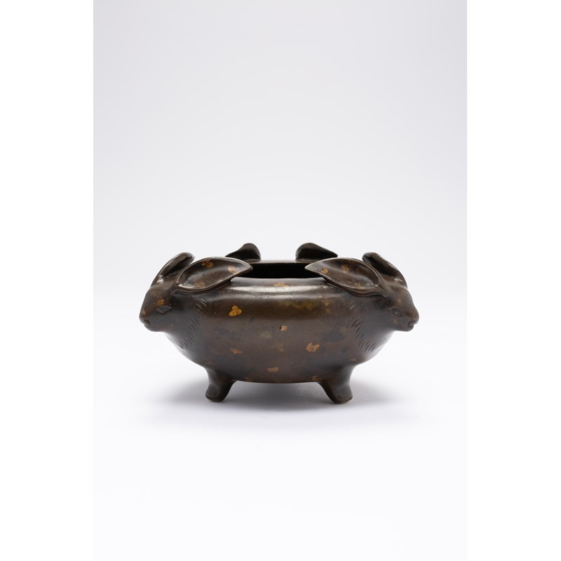A CHINESE GOLD-SPLASHED BRONZE 'BATS' TRIPOD INCENSE BURNER