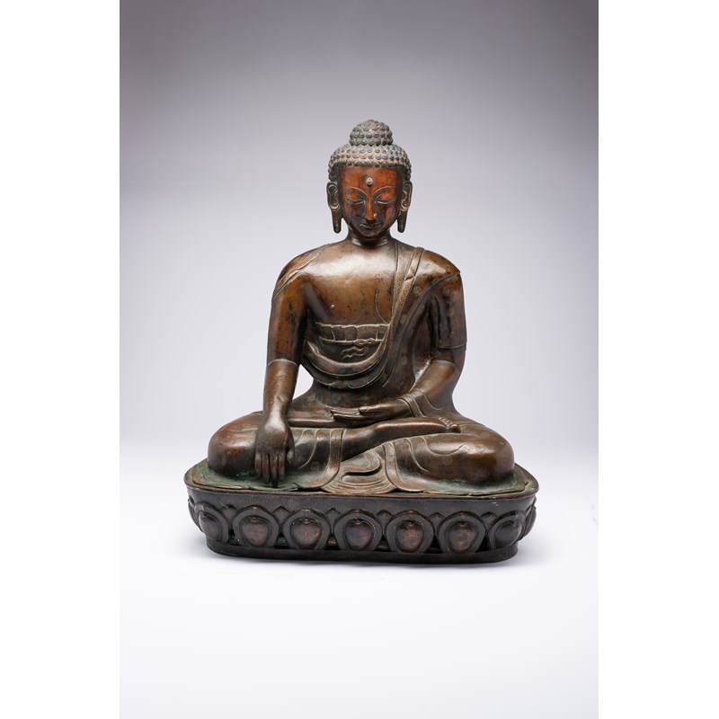 A LARGE TIBETAN COPPER REPOUSSE FIGURE OF BUDDHA