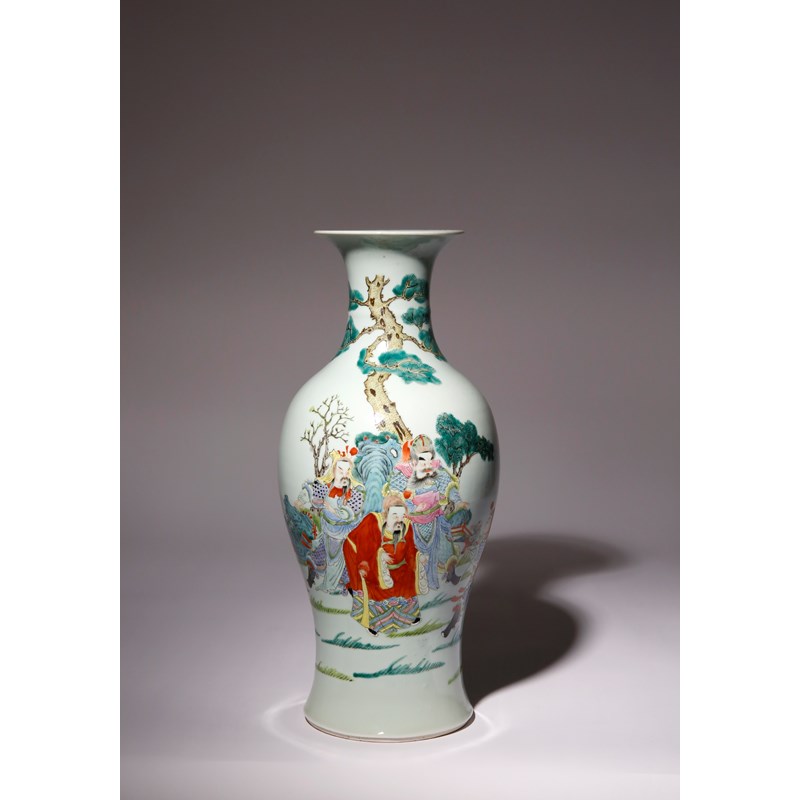 A CHINESE FAMILLE ROSE 'ROMANCE OF THE THREE KINGDOMS' BALUSTER VASE