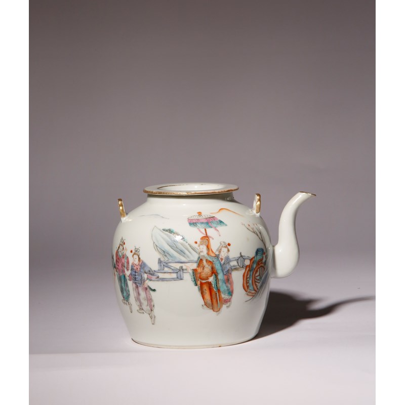 A CHINESE FAMILLE ROSE 'FIGURAL' TEAPOT AND COVER
