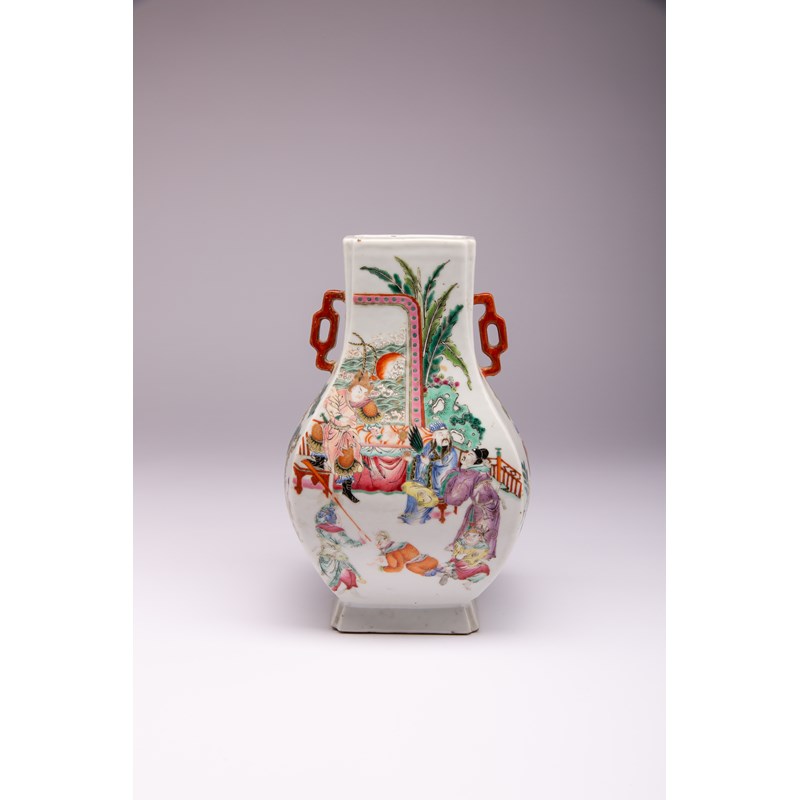 A CHINESE FAMILLE ROSE 'FIGURAL' HU-SHAPED VASE,