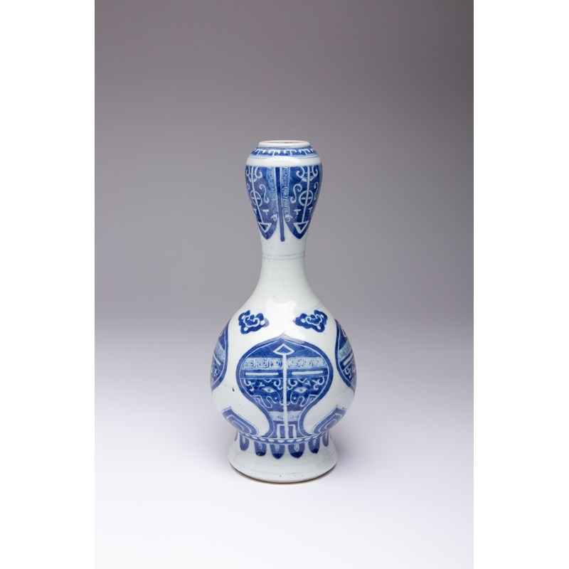A CHINESE BLUE AND WHITE GARLIC-MOUTH VASE