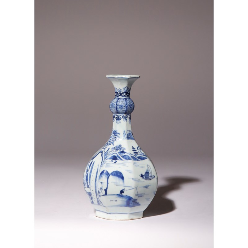 A CHINESE BLUE AND WHITE OCTAGONAL BOTTLE VASE