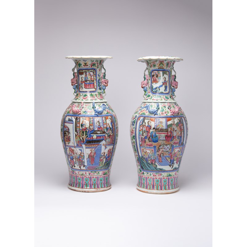 A PAIR OF LARGE CHINESE CANTON FAMILLE ROSE VASES