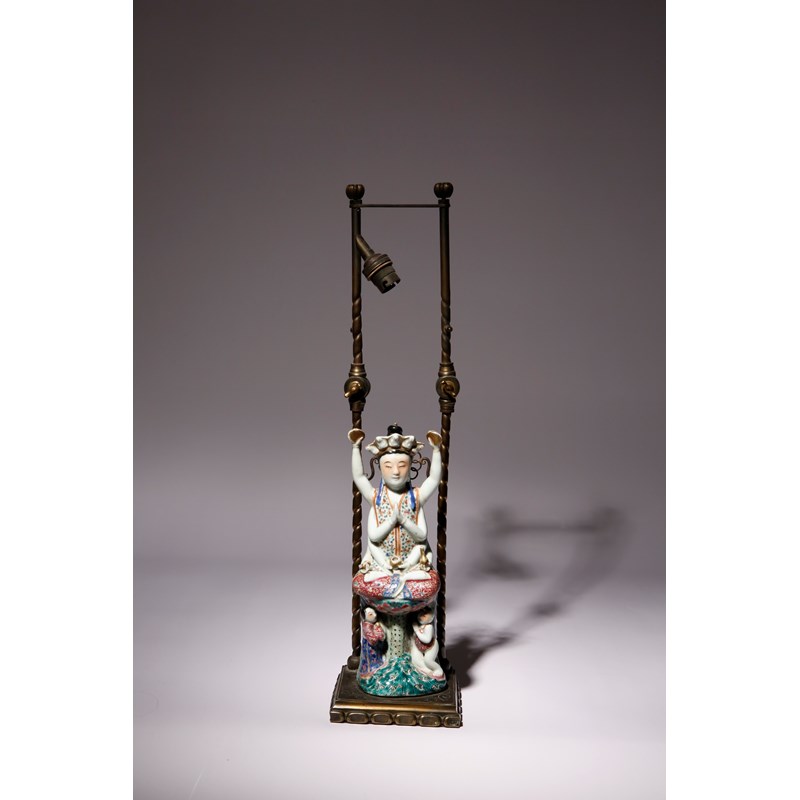 A CHINESE FAMILLE ROSE EIGHT-ARMED FIGURE OF GUANYIN