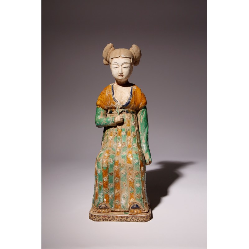A CHINESE SANCAI POTTERY FIGURE OF A SEATED COURT LADY