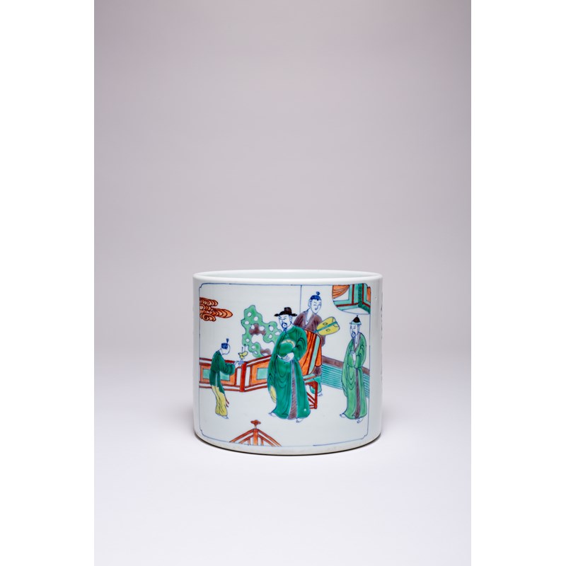 A LARGE CHINESE DOUCAI 'FIGURAL' BRUSHPOT, BITONG