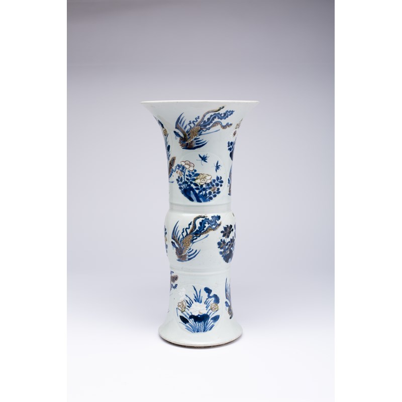 A CHINESE UNDERGLAZE BLUE AND COPPER-RED 'PHOENIX' BEAKER VASE, GU
