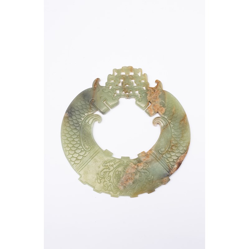 清晚期/民國 青白玉雕摩羯形環