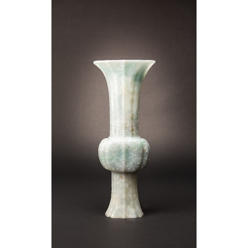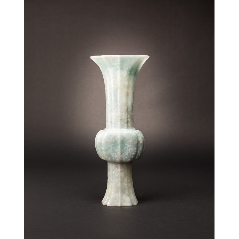A LARGE CHINESE LOBED JADEITE GU-SHAPED VASE