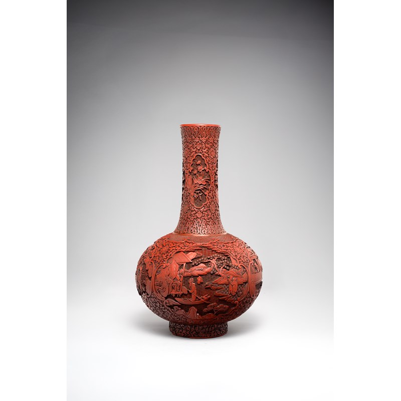 A LARGE CHINESE CINNABAR LACQUER BOTTLE VASE