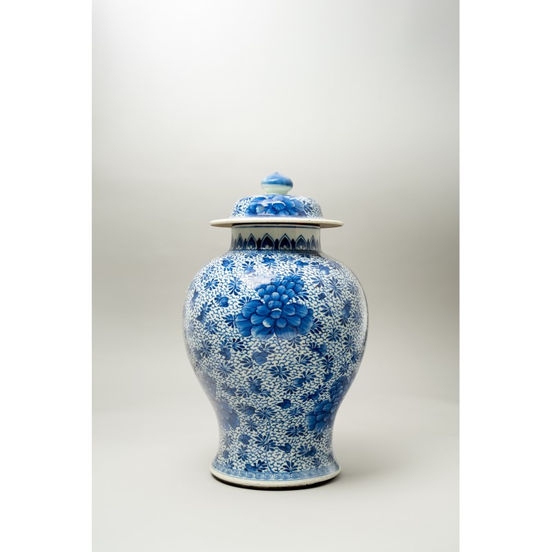 A CHINESE BLUE AND WHITE BALUSTER VASE AND COVER