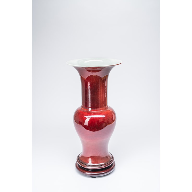 The baluster body with a trumpet neck, covered in a rich deep red glaze, 43.5cm.