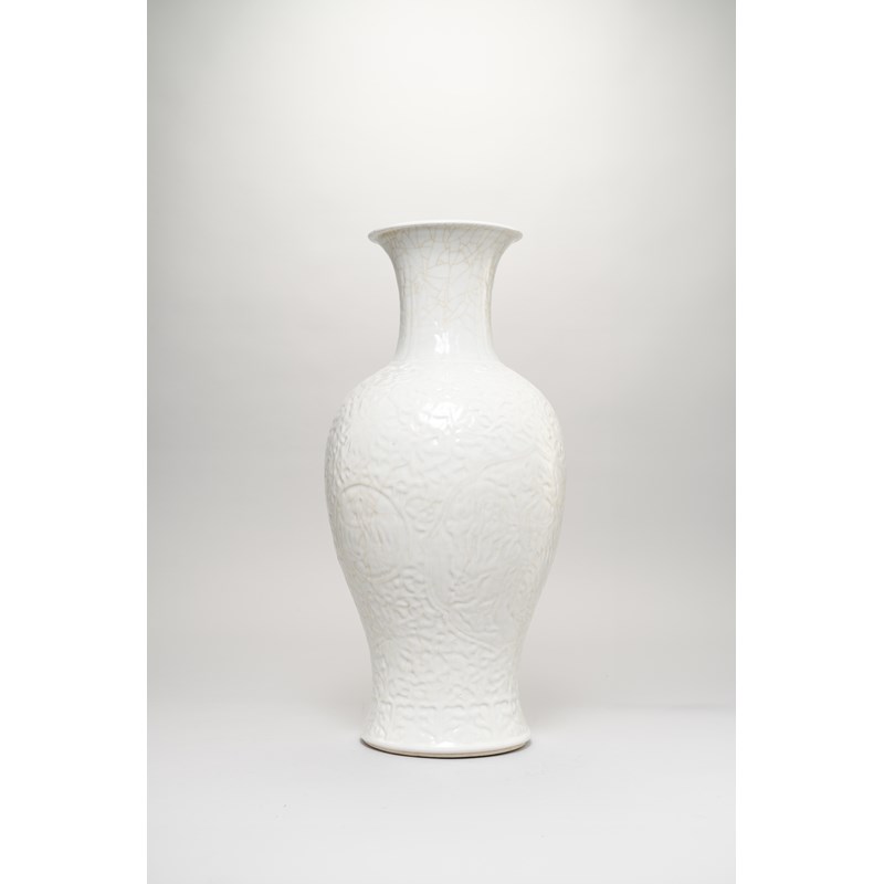 Of baluster form, decorated with panels of mythical birds against a dense leafy scrolling lotus ground, the surface suffused with a network of crackle, 46cm.