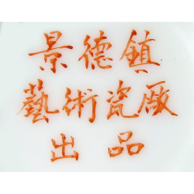 Delicately painted with a pair of phoenix and a multitude of other birds, bai niao chao feng, all amongst flowering peony and rockwork with pine and maple trees, the flared neckrim painted with formal leaves and geometric bands, the base inscribed Jing de zhen yi shu ci chang chu pin, 16cm.