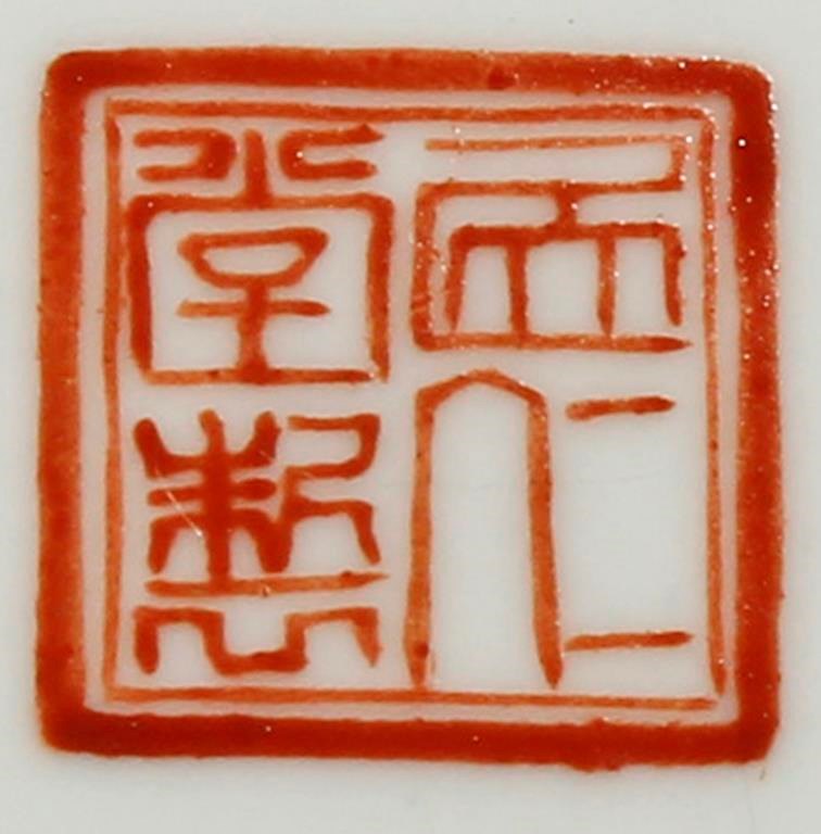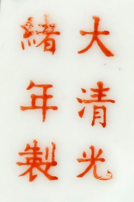 All brightly painted with figures studying books, riding in a cart and of boys playing with a frog, the bottle with calligraphy to the reverse, the saucers with ju ren tang zhi marks, the bottle with Guangxu mark, 23.5cm. (4)