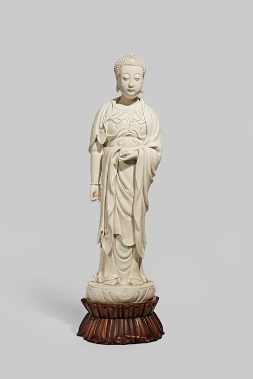 A LARGE CHINESE BLANC DE CHINE FIGURE OF BUDDHA