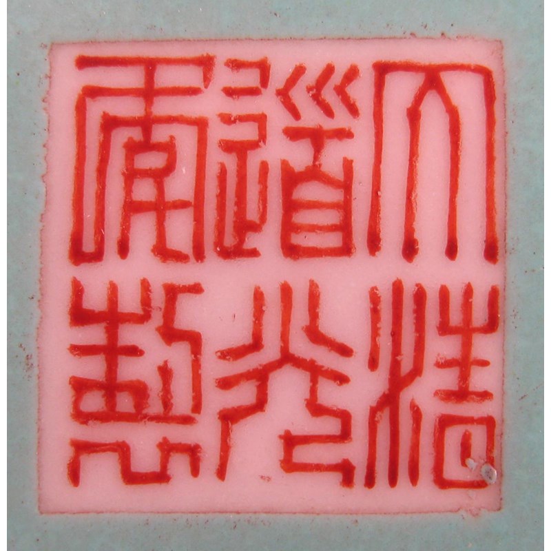 *A Chinese square section box and cover Daoguang seal mark but later, painted with six cranes flying above the sea, the sides with leaf scrolls in blue and gold, 8cm. (2)