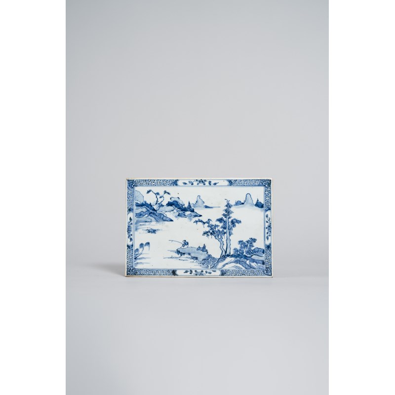 A CHINESE BLUE AND WHITE RECTANGULAR TILE