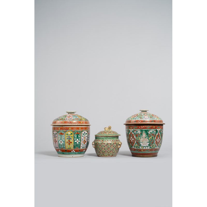 THREE CHINESE THAI MARKET BOWLS AND COVERS
