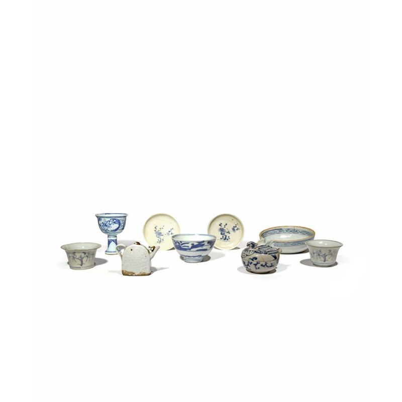 NINE CHINESE BLUE AND WHITE ITEMS YUAN AND LATER Variously formed as bowls
