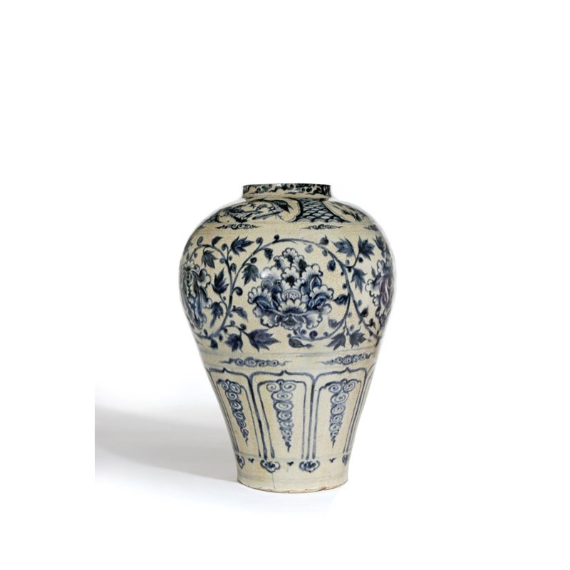 A LARGE VIETNAMESE BLUE AND WHITE MEIPING 16TH CENTURY The tapering ovoid body painted with a...