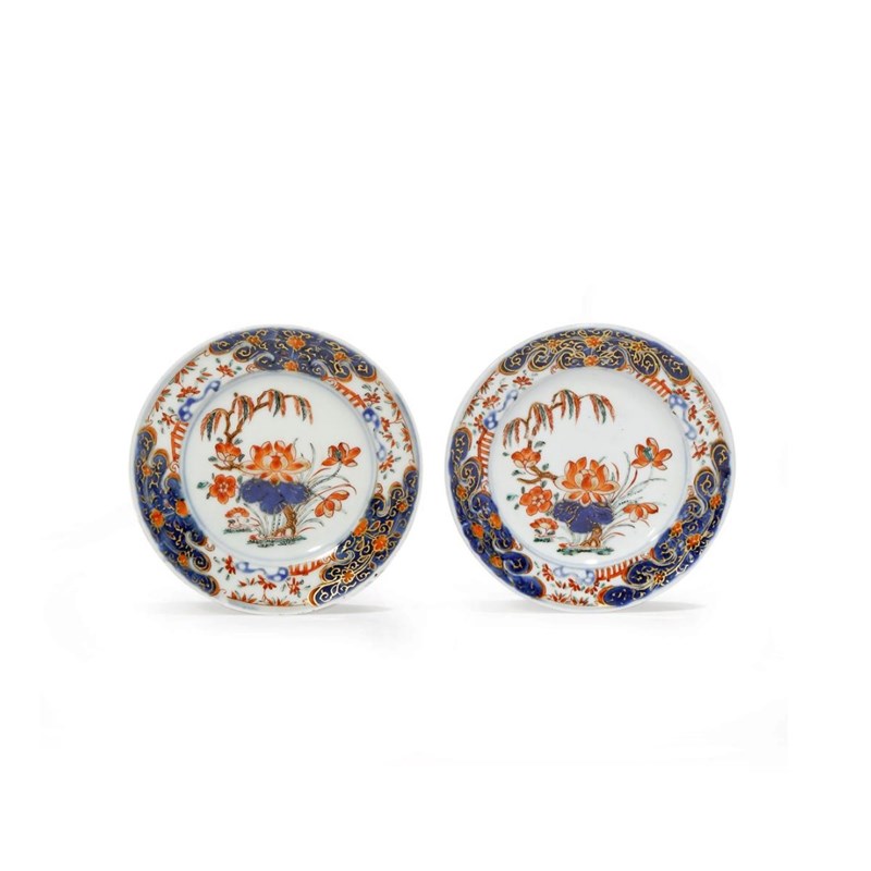 A PAIR OF JAPANESE IMARI MINIATURE DISHES 18TH CENTURY Each painted with flowering lotus beneath...