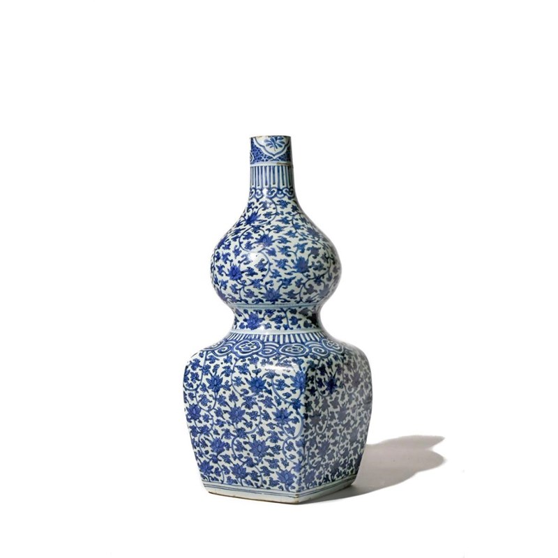 A CHINESE BLUE AND WHITE GOURD-SHAPED VASE JIAJING 1522-66 Decorated with a continuous scrolling...