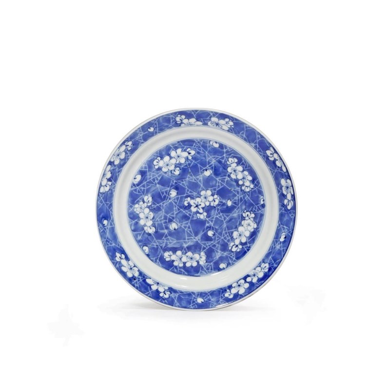 A SMALL CHINESE BLUE AND WHITE DISH KANGXI 1662-1722 Painted with prunus blossoms on a...