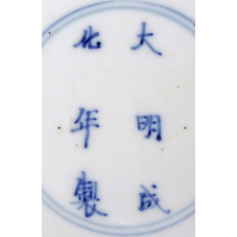 Painted with prunus blossoms on a cracked-ice ground, the base with a six character Chenghua mark, 16cm.
