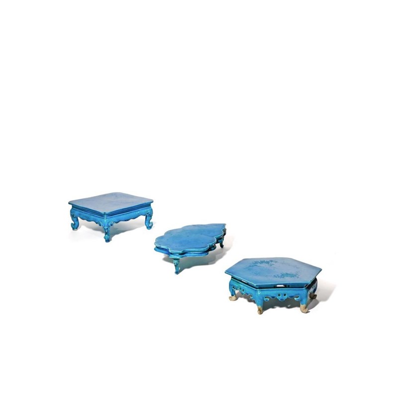 THREE CHINESE TURQUOISE GLAZED PORCELAIN STANDS KANGXI 1662-1722 One hexagonal