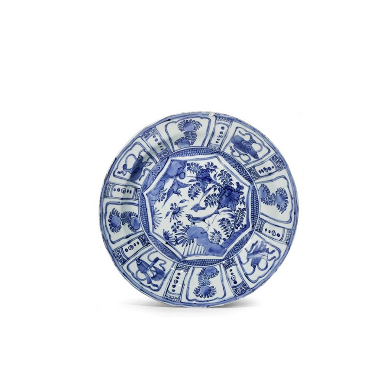 A CHINESE KRAAK PORCELAIN DISH WANLI 1573-1620 The well painted with an octagonal cartouche...