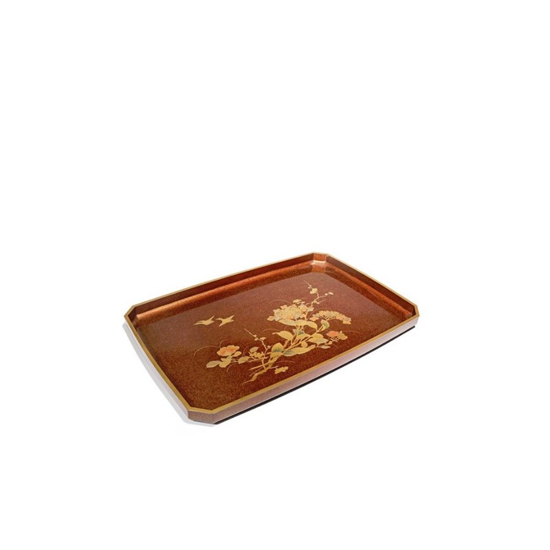 A LARGE JAPANESE LACQUER TRAY MEIJI 1868-1912 The rectangular body decorated with two small birds...