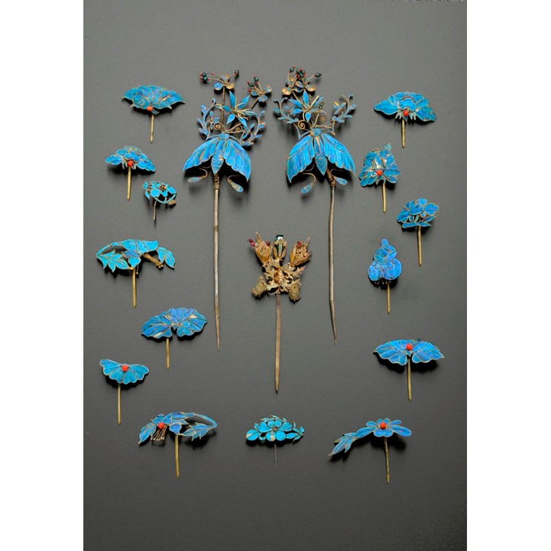 清 點翠頭飾 一組十七件
