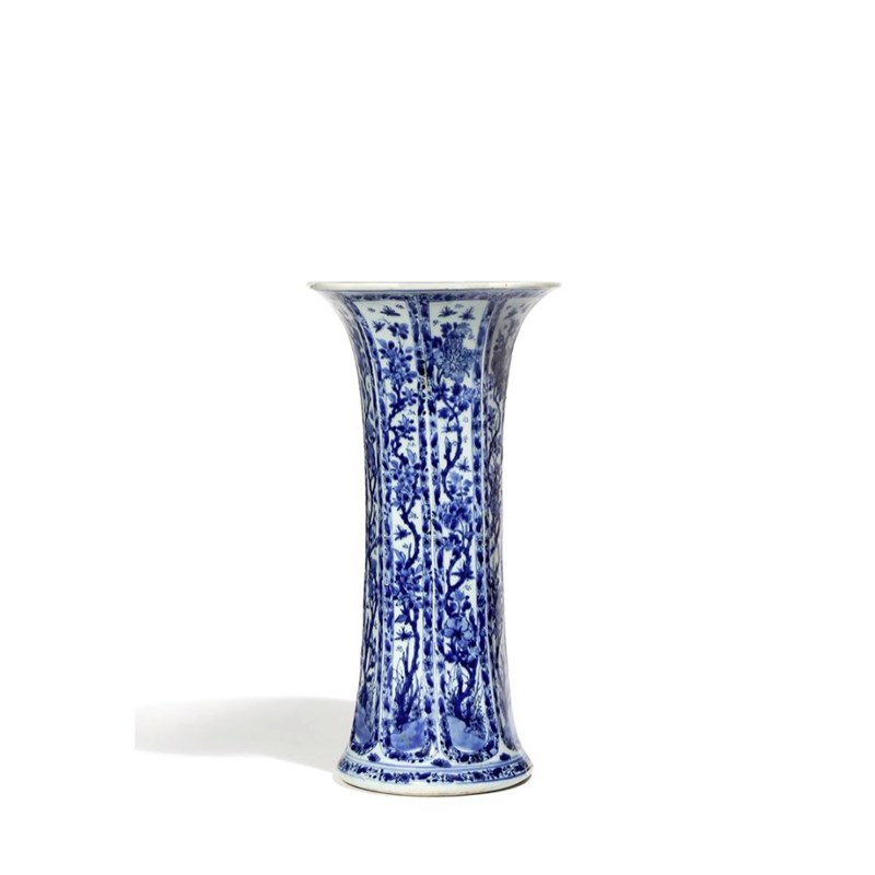 A CHINESE BLUE AND WHITE BEAKER VASE KANGXI 1662-1722 The octagonal body with a flaring foot and rim