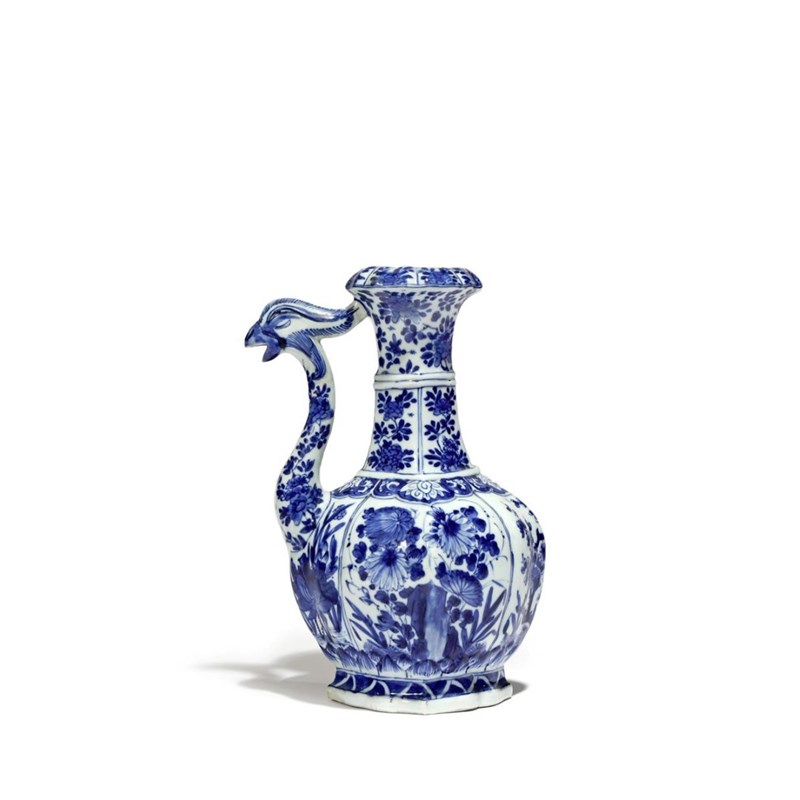 A CHINESE BLUE AND WHITE PHOENIX HEAD KENDI KANGXI 1662-1722 The quatrefoil body moulded with...
