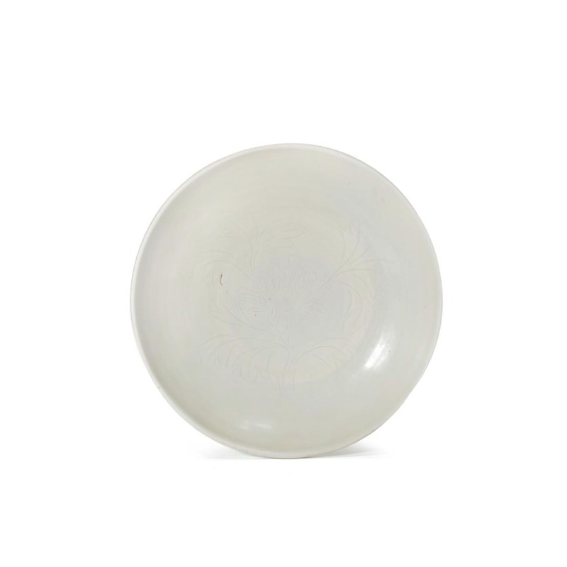 A LARGE CHINESE BLANC DE CHINE DISH MID-17TH CENTURY The centre incised with a large peony